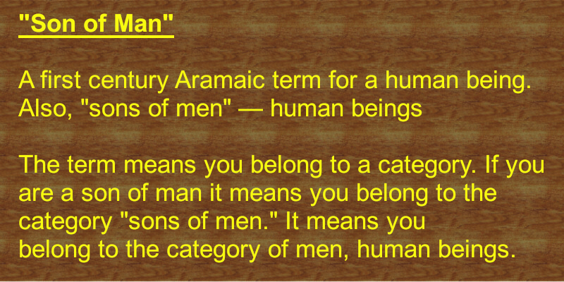 The son of man was a first century Aramaic term for a human being and will we see in Scripture the term sons of men also, refers to human beings. It's just the son of man in plural form. Trinitarians admit this when they argue if son of man means he is man, then they say son of God means he is God. Some Trinitarians think they're pretty clever when they make an argument like this however it's a complete farce. I don't know why some of them don't see that for themselves it's quite obvious if you just think about it. First of all a Christian is a begotten son of God he isn't God and a Christian is also a son of man the son of God means son of God the Father. The term son of man doesn't mean anything like that, it's the son of a particular father but the term son of God does mean that, that means the son of God our Father and it meant that for Jesus as well.